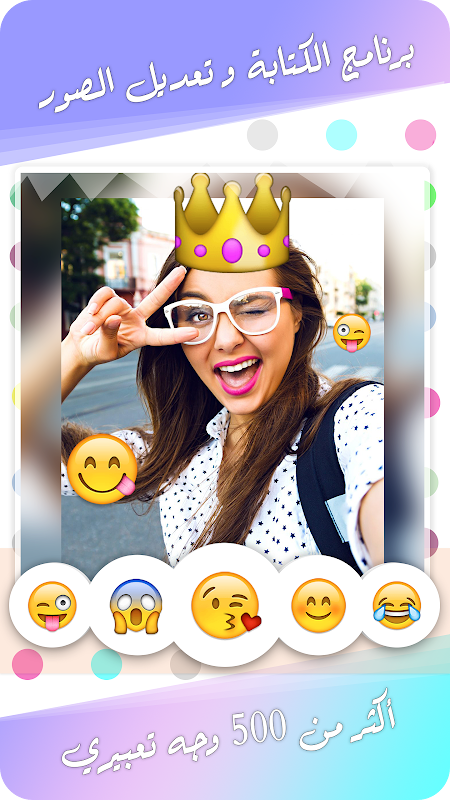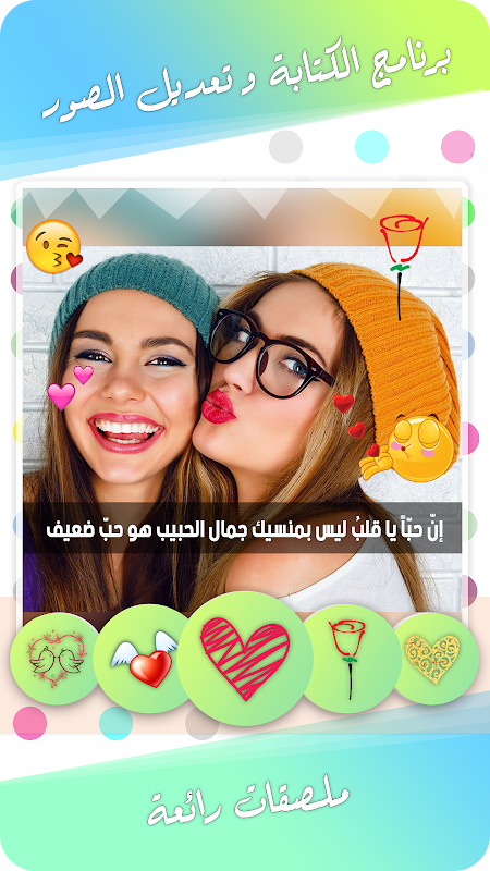 برنامج الكتابة وتعديل على الصور يحتوي على ميزات جد رائعة كملصقات (Stickers) و خلفية ضبابية لصورة و خلفيات بشتى الوان وانواع والاشكال , الجدير بذكر ان برنامج الكتابة وتعديل على الصور هو تطبيق العربي وحيد الامثل و انسب لتحسين مظهر صورك و جعلها احترافية وجذابة للعين