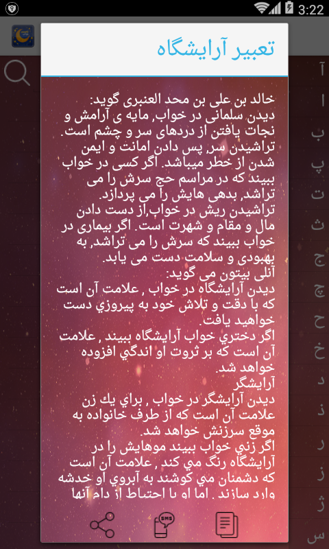 这个应用程序能够搜索梦想解释和根据字母分类梦想。