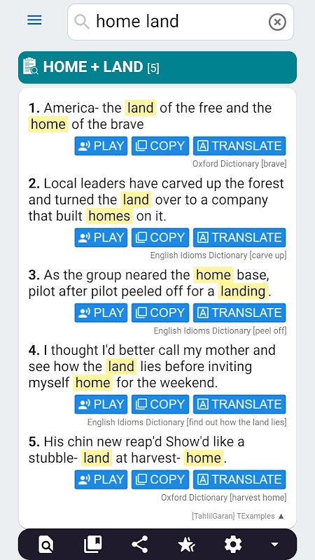 学习任何新语言短语的最佳方法是在有效的例子中学习词汇。在示例句子中,Android版本中包含超过500,000个表达式和示例的分析师已经收集了有效词典的示例,并添加了搜索复合词汇表的功能。