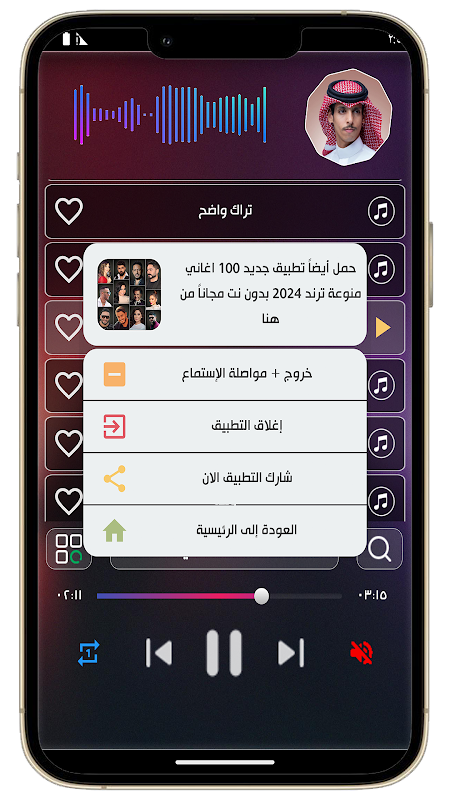 • خاصية الاستماع الى الشيلات واستخدام تطبيقاتك الاخرئ