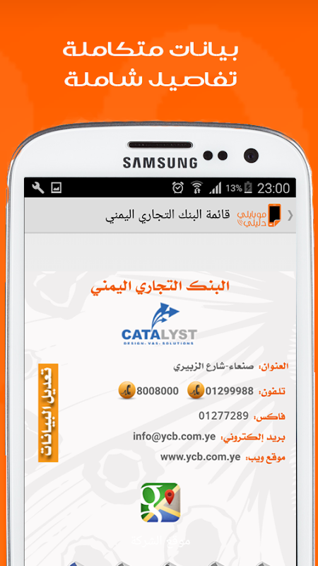 يعتبر الأول من نوعه في اليمن فهو يضم دليل لعناوين الشركات والمؤسسات اليمنية بكافة المجالات ، فهو يضم عناوين وأرقام هواتف و إيميلات وتفاصيل أخرى لأكثر من 20,000 عنوان في كل المجالات.