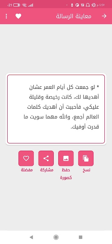 该应用程序一般是情书或浪漫案例或爱情和爱情消息的应用,该应用程序提供超过5000条新的和多样化的消息,并分为不同的类别,例如(爱情和浪漫消息,渴望和怀旧消息,早上消息给爱人或心爱的人,给爱人或女朋友的晚间消息,情人节消息,心爱的生日消息,爱情诗)等等。