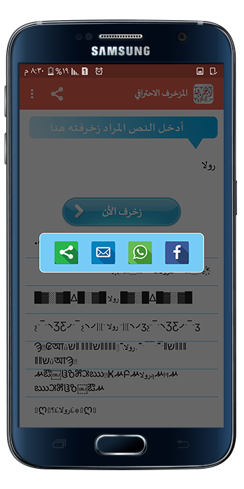 يمكنك زخرفة النصوص وارسال النص المزخرف كرسالة مزخرفة لأصدقائك , أو مشاركتها عبر الفيس بوك كمنشور مزخرف أو عبر الواتس اب , كما يمكنك انشاء اسم مزخرف يدويا عن طريق استخدام اشكال موجودة داخل التطبيق