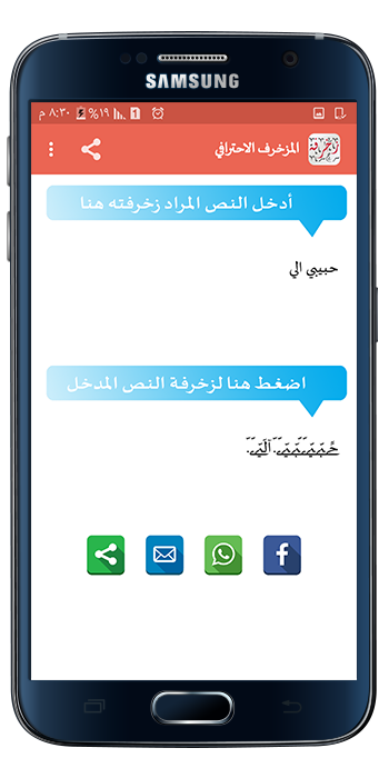 زخرفة الكتابة و زخرفة كتابة على كيفك يوجد العدد من اشكال النصوص و الزخارف و زخرفة احترافية و كما التطبيق يدعم الاوان و مميزة زخرفة الاسماء و رموز و اشكال زخرفة الفيس بوك و زخرفة خط الفيس بوك زخرفة انجليزي و انجيليزي معرب و كما يمكنك من خلال البرنامج تشكيل الحروف و حروف مزخرف كما ترغب لا تتردد في تحميل التطبيق زغرفه تستطيع من خلال البرنامج تشكيل الكلمات و تشكيل البرودكاست يمكن نسخ النص عن طريق الضغط على زر النسخ او مشاركة النص على مواقع التواصل الاجتماعي مثل فيس بوك وتطبيقات التواصل مثل واتس أب وفيس بوك ويوجد في صور التطبيق صور تبين ذلك , كما يمكن ان تستخدم النصوص المزخرفة لإرسالها رسائل جوال مزخرفة للأصدقاء و مشاركتها عبر الفيس بوك كمنشور مزخرف