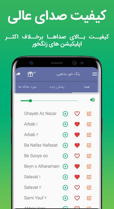 - دارای چهار بخش زنگ تلفن ، زنگ اعلان، زنگ ساعت و لیست علاقه مندی های شما