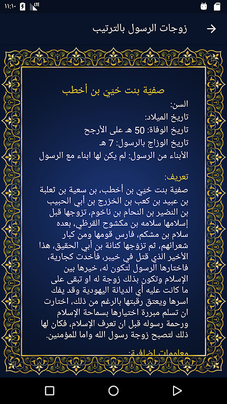 独特之处在于信息的呈现方面,发现日期和希吉拉年申请的顺序先知的妻子的名字,那年表的形式,不仅如此,但你可以点击,管理和所有对使徒心爱的妻子和孩子的数目,出生和死亡的比率日期接收信息的名称她的年龄和已婚真主的使者。