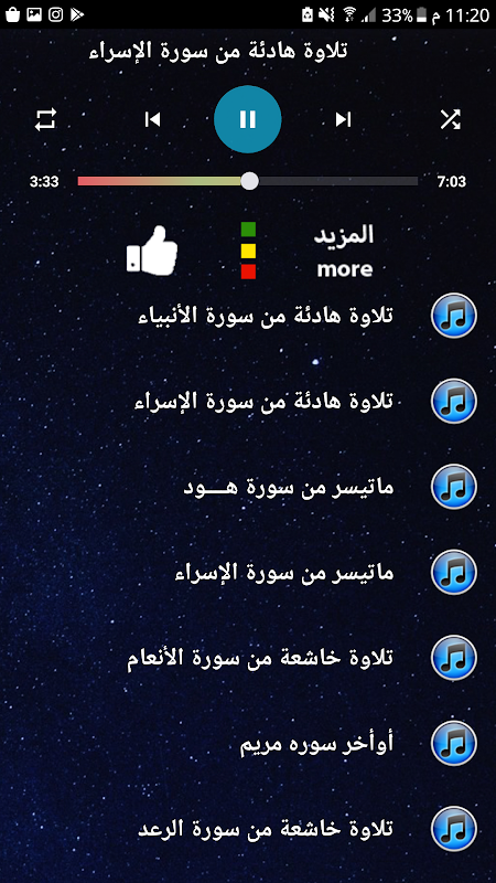 该应用程序包括用谢赫谢里夫穆斯塔法的声音朗诵《古兰经》的大部分内容