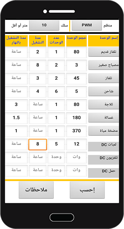 - 基于的基于可用的太阳能电池板的大小的操作或负载要求的大小的太阳能能量需求计算。