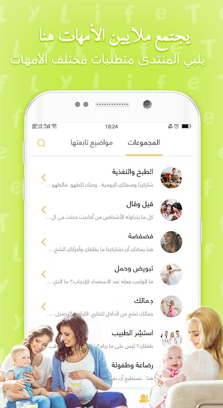 يضم منتدى الأمهات ملايين الأمهات في الوطن العربي، ويمكنك التواصل معهن للاستفادة من خبراتهن الشخصية وتبادل المعرفة معهن فكل ما يخص رعاية الطفل والحمل وتكوين صداقات في كل أنحاء الوطن العربي وتقديم الدعم بين السيدات والأمهات؛ حيث يمكن الدردشه في كل المواضيع النسائية التي تخصك ومشاركة الآخرين بوصفات الاكل وكل ما هو جديد يهمك ولا ننسى بعض الترفيه والمرح بالأنشطة والألعاب التي تقام بصفة دورية! وينقسم المنتدى إلى 8 مجموعات مختلفة تلبي حاجاتك.