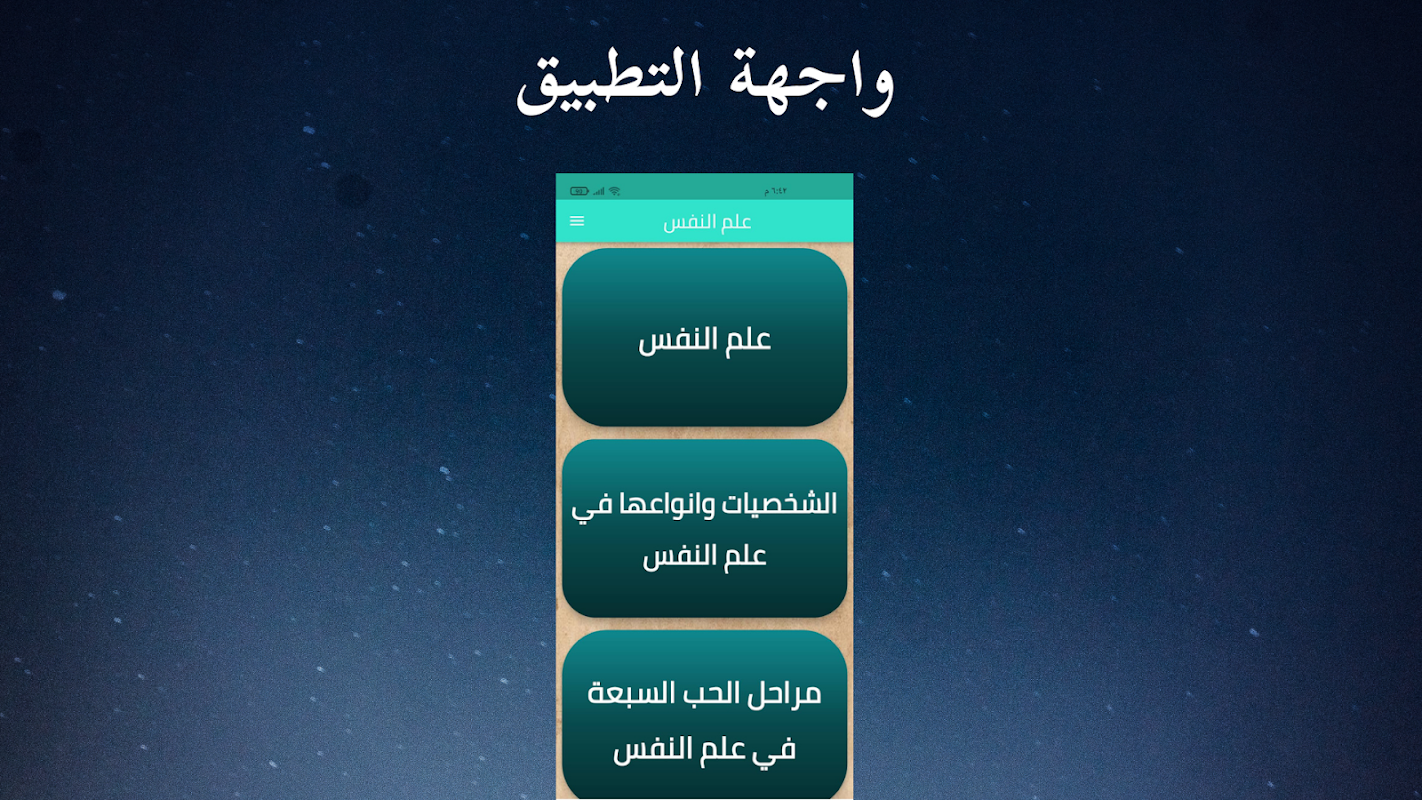 因此,我们为您提供心理学应用程序,其中包含对所有热爱和对这门科学感兴趣的人有价值和有用的信息。我们应用程序的特点之一是它包含易于使用的界面,并以优雅的方式排列和专业的方式。颜色在应用程序中经过精心选择和协调,以方便眼睛并为用户提供最佳体验,我们希望您喜欢它,我们为您提供以下内容: