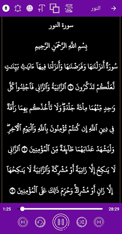 ميزة تكبير الخط لتسهيل قراءة سور القرآن الكريم.