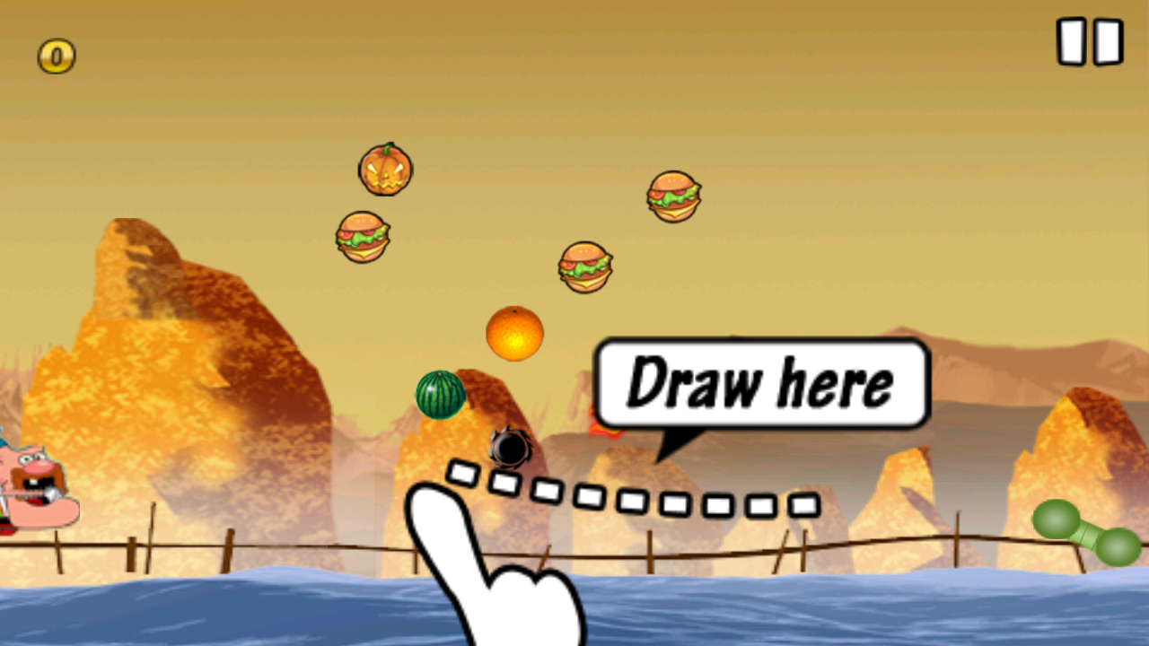 العم جدو لعبة قفز خفيفة للأطفال والكبار سهلة التحكم عن طريق رسم اشكال من الخيزران لمنع العم جدو من السقوط ومساعدته على جمع اطعمته المفضلة من فواكه و سندويتشات و مربى الفستق و البندق
