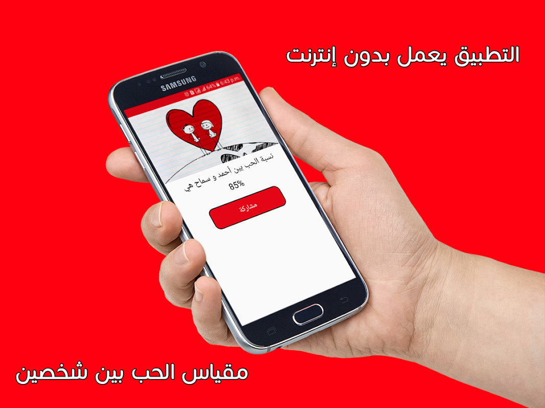 تطبيق مقياس الحب بين شخصين يوضح لك نسبة الحب بين شخصين عن طريق الاسم ، ويمكنك مشاركة النسبة من خلال مواقع التواصل الاجتماعي .