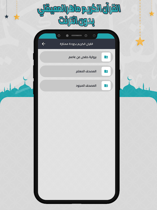 您无需花钱购买该应用程序,并且在商店中轻松安装了该应用程序之后,您将可以用Sheikh Maher Al-Moaikaly的声音收听《古兰经》。
