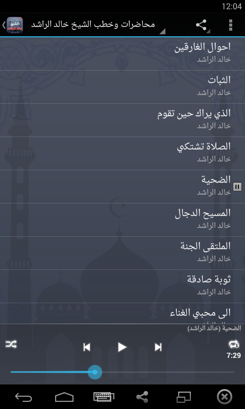 هذا البرنامج يمكنكم من الاستماع وتنزيل افضل خطب ومحاضرات الشيخ خالد الراشد بدون نت كامله, مع العديد من الامكانيات والخصائص الاخرى التي يتضمنها التطبيق, حيث يمكن من تحميل محاضره الشيخ خالد الراشد صوت بدون انترنت بصيغة mp3