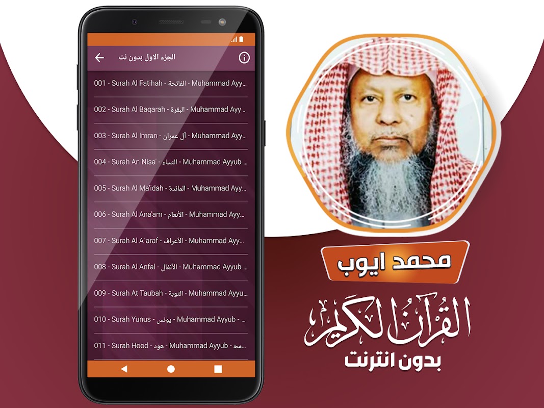 Qu Holy古兰经应用程序包含朗诵者Muhammad Ayoub的声音,无需互联网即可收听古兰经的古兰经,并且该应用程序的特点是可免费朗诵古兰经。