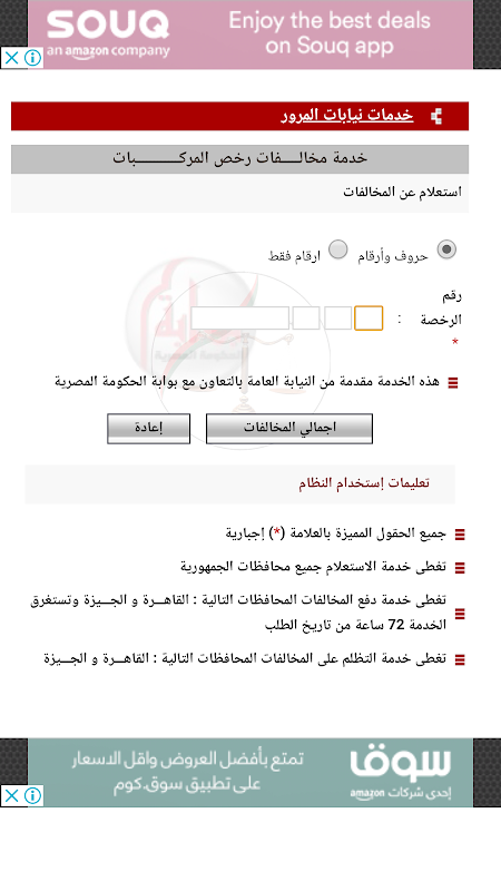 يساعدك على كشف مخالفاتك المرورية في جميع محافظات مصر.