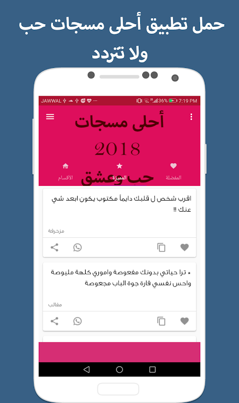 حمل الان أكبر واضخم تطبيق مسجات 2018 على المتجر بأكثر من 40000 مسج واكثر من 40 تصنيف.