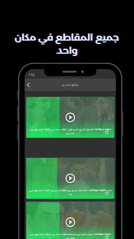 一个应用程序,可以在一个地方以阿拉伯语观看和欣赏憨豆先生系列的所有剧集和剪辑。