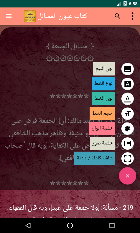 ◉ امكانية عرض الابواب بنظام القراءة الليلة المريحة للعين .