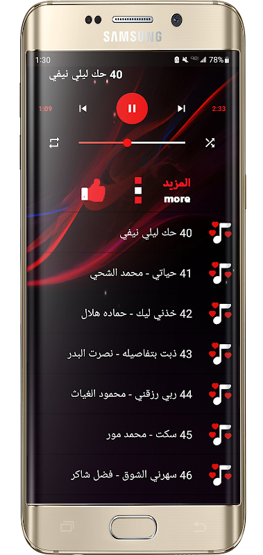 该应用程序包含100多首伊拉克和阿拉伯歌曲,还包括40多位艺术家的歌曲