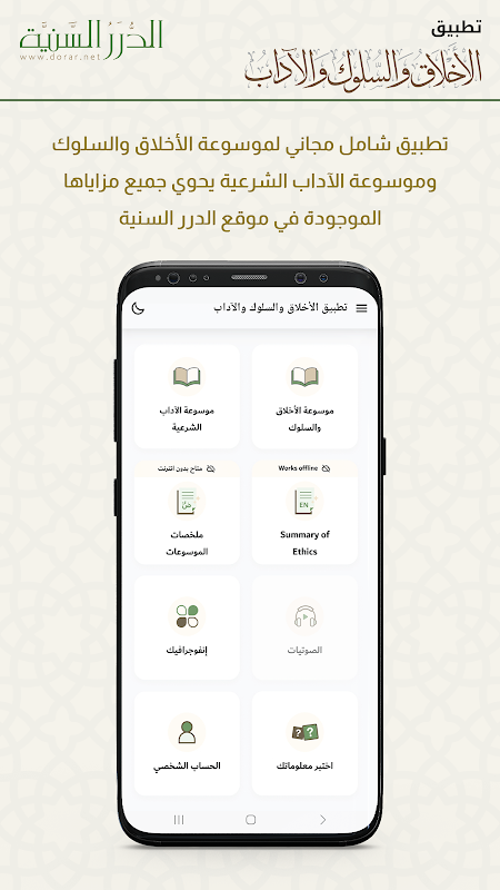 这是杜拉尔·逊尼派基金会为《道德与行为百科全书》和《伊斯兰礼仪百科全书》发布的唯一官方应用程序。