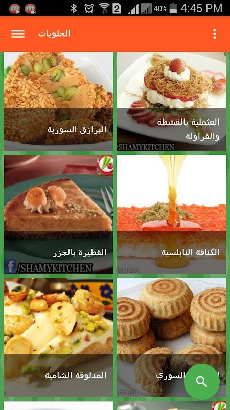 استمتعى أنت وعائلتك بأفضل مذاق وألذ طعم للمأكولات والحلويات الشامية مع تطبيق وصفات شامية شهية وهو تطبيق يتيح لك تصفح الكثير من وصفات المطبخ الشامى السورى واللبنانى والمطبخ السورى مطبخ عريق متنوع يستمد تنوعه من الطبيعة السورية ومدنها فكل مدينة لها مايميزها من الأكلات ما بين دمشق وحلب وحمص وحماة ومدن الساحل ومنطقة الجزيرة والبادية والمناطق الجبلية. هذا ماجعل المطبخ السورى غنى بأطباقة الشهية وحلوياتة الشهيرة في كل العالم. ويقدم التطبيق وصفات السلطات و المقبلات واللحم والخضار والمعجنات والمشويات والعديد من أنواع المشروبات وأفضل اطباق الحلويات الشرقية الشامية والمشهورة بطعمها اللذيذ بطريقه سهله و بسيطة تحتوى على المقادير وطريقه التحضير والتطبيق مدعم بالصور. هدفنا هو اسعادكم وتقديم طريقة عمل مأكولات المطاعم الفاخرة بالمنزل. أطلعينا على رأيك وشاركينا خبرتك.أضيفى طريقتك الخاصة على موقعنا أو صفحتنا على الفيسبوك .ان أعجبك التطبيق سيكون من الرائع ان نرى تقييمك .