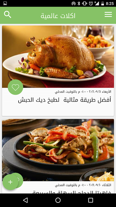 بعض انواع الاطعمة والاطباق في التطبيق :