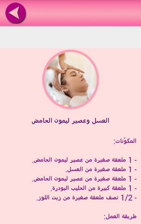 سيدتي التطبيق عبارة عن وصفات و خلطات طبيعية غير مكلفة و جد سهلة اتمنى ان تجربي كل هذه الوصفات التي سوف تكتشفينها.