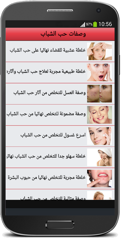 يحتوي تطبيق وصفات لازالة حب الشباب نهائيا على اكثر من 15 وصفة و خلطة و اقنعة للوجه مجربة بدون أنترنيت متجددة بستمرار و هذه بعضها :