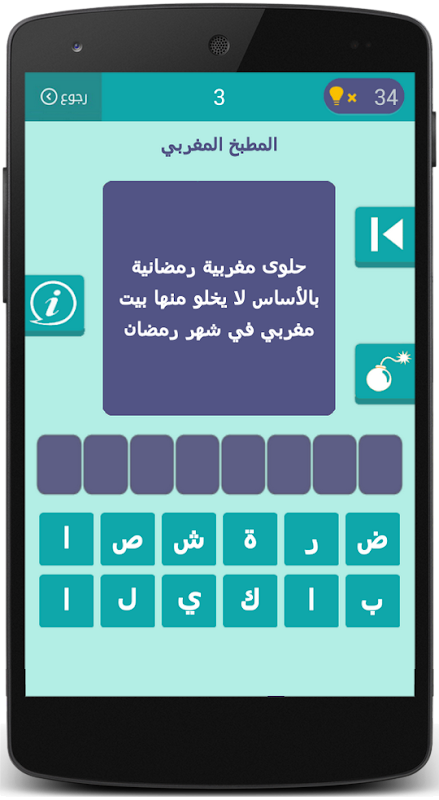 في كل مرحلة مجموعة من اسئلة المشوقة والممتعة, هذه اللعبة بجودة اسئلتها تعتبر دورة ثقافية شاملة ستثري معلوماتك بشتى المجالات, وهناك الكثبر من الاسئلة الخفيفة التي تعتمد على فطنتك وذكاءك ،ولا يخلو اي سؤال من متعة التفكير والتشويق.