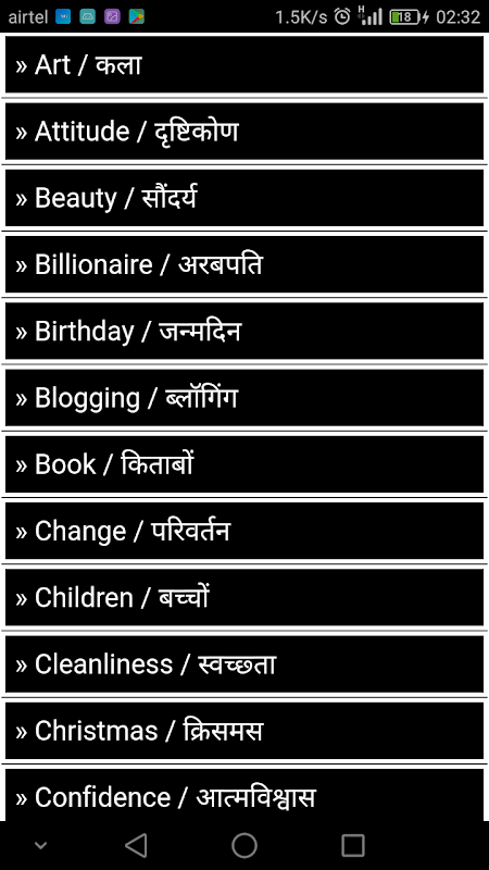 Anmol Vachan应用具有不同的作者在许多类别伟大的印地文的报价。这是充满在印地文和激励鼓舞人心的报价的。阅读报价和乐观,希望,团队精神,领导能力,勇气和成功的丰富你的生活。
