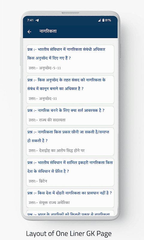 印地语中还有数千个其他最重要的 Samvidhan Gk 问题,这些问题在以前的考试中被问到。最重要的是。此应用程序完全离线,除了需要互联网的每日时事