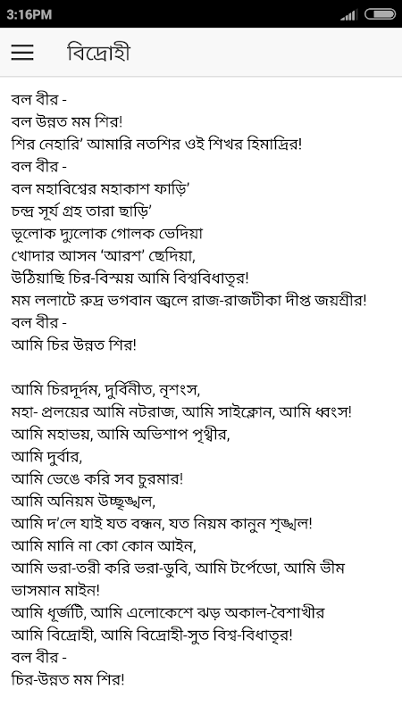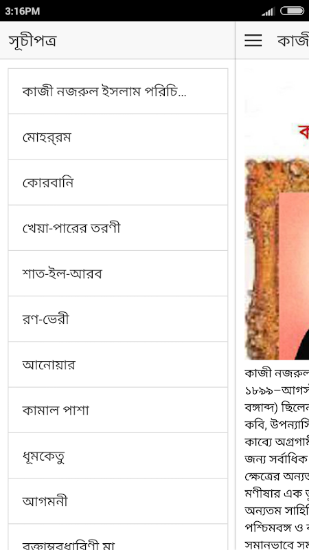 Kazi Nazrul是孟加拉国的民族诗人,他被称为Rebel Poet(Bidrohi Kobi)。他以反叛诗和他的歌曲Nazrul Sangreet的作曲而闻名。卡齐·拿鲁尔·伊斯拉姆的热门书籍是Dolonchapa,Rikter Bedon,Bisher巴士,Sonchita,德赫克图,Bidhrohi,Badhan原,Nazrul Geeti等。他为他的诗“Bidrohi”赢得了更多的名气。卡齐·拿鲁尔·伊斯拉姆通俗诗,书孟加拉,诗歌,歌曲,写作和阅读Agnibina由卡齐·拿鲁尔·伊斯拉姆。