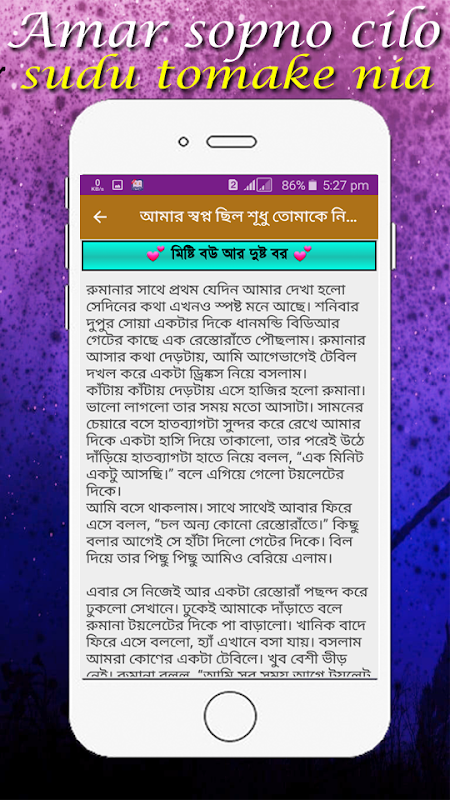 আমাদের অ্যাপটি। আমাদের অ্যাপটির মাধ্যমে আপনারা ভালোবাসার সকল ধরনের গল্প