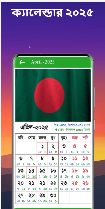 ক্যালেন্ডার২০২৫ – বাংলা, ইংরেজি ও আরবি তারিখ সহ একটি সম্পূর্ণ ক্যালেন্ডার অ্যাপ