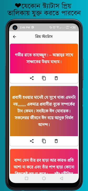 ⮞ আপনি চাইলে আপনার পছন্দের স্ট্যাটাসটি প্রিয় তালিকায় যুক্ত করে রাখতে পারবেন।