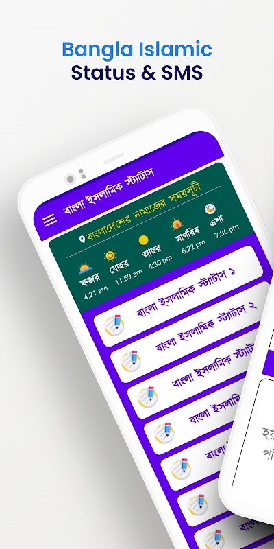 孟加拉语伊斯兰地位 伊斯兰地位 伊斯兰短信和祈祷时间表。