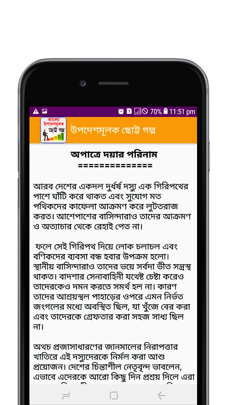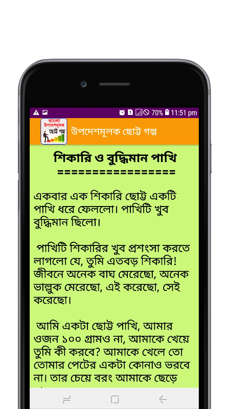 উপদেশমূলক গল্প অ্যাপে আমরা এমন কিছু গল্প তুলে ধরেছি যা আপনাকে অনেক কিছু শিখীয়ে নিজের জীবনের ভুলকে শুধরাতে সাহায্য করবে। আমরা এখানে কিছু মনিষীদের বানী এবং মনিষীদের জীবনের ঘটনা তুলে ধরেছি যা আপনার জীবনকেই বদলে দিবে। আপনার কাছে শুনে ভালো লাগবে যে আমাদের পূর্ববর্তী উপদেশমূলক গল্প ঘটনা থেকে মানুষ বিশেষভাবে উপকারিত হয়েছে তাই আমরা আপনাকেও বলব যে একবার এই শিক্ষামূলক গল্পগুলো পড়ে দেখুন এবং নিজের জীবনকে বদলে নিন।