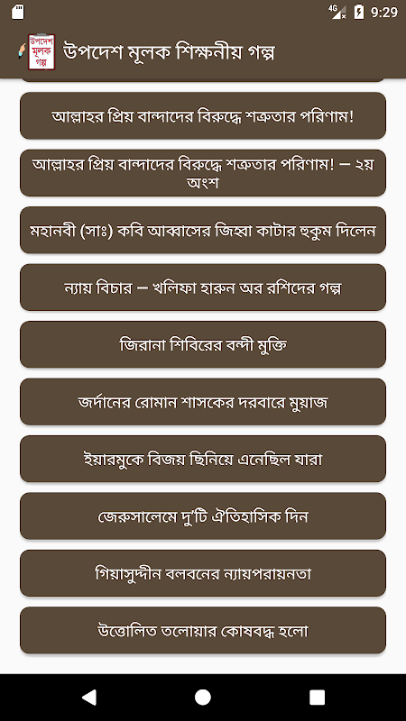 উপদেশ ও শিক্ষামূলক ছোট গল্প নিয়ে আমাদের এই অ্যাপটি সাজানো হয়েছে। এই অ্যাপটির মধ্যে বেশ কিছু জনপ্রিয় শিক্ষা ও উপদেশ মূলক ছোট গল্প দেয়া হয়েছে । এগুলো নতুন সংগ্রহীত করা হয়েছে । আশা করি আপনাদের ভাল লাগবে ।