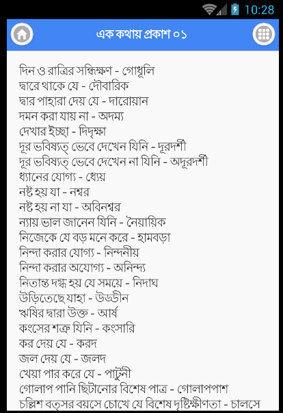 আসালামু আলাইকুম, আমার অ্যাপ্সের পক্ষ থেকে সবাইকে স্বাগতম। এক কথায় প্রকাশ নিয়ে তৈরি করা আমাদের এই অ্যাপ। বিভিন্ন পরীক্ষায় যেমন বিশ্ব বিদ্যালয় ভর্তি পরীক্ষা, বিসিএস সহ বিভিন্ন জব এর পরীক্ষায় বাংলা ২য় পত্রের এক কথায় প্রকাশ থেকে অনেক পশ্ন আসে। সে সব প্রশ্নের সমাধান যাতে ভাল ভাবে দেওয়া যায় সেই উদ্দেশ্য কে সামনে রেখে এই অ্যাপটি বানানো হয়েছে। এখানে প্রায় ৩০০ টি এক কথায় প্রকাশ রাখা হয়েছে।