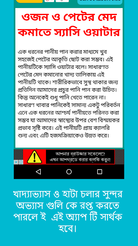 ojon komanor upay, ojon komanor chart, med vuri ki kori, druto ojon komanor upay etc. contain in this bangla weight loss app which provides a huge amount of resource for user and it helps as a bangla weight loss guide.It is very useful and convenient for users. So download this app and take the health advice for the betterment of your health.It is very neccessary for all to take a doctor advice at first.