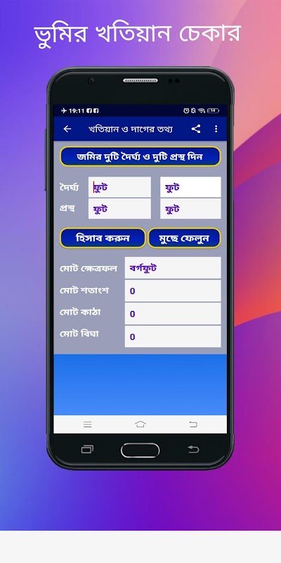 আমাদের এই এ্যপটি বাংলাদেশের সকল জমির খতিয়ান বের করে দিবে। আপনি শুধু আপনার খতিয়ানের নাম্বার অথবা সংশিষ্ট মৌজার দাগ নাম্বার দিবেন, বিস্তারিত খতিয়ান চলে আসবে। ঘরে বসে আপনার ভূমির খতিয়ানের সকল তথ্য পেতে এই এপটি ব্যবহার করুন, একই সাথে এই এপে পাবেন নামজারী বা নাম খারিজ, নামজারির অপশন।