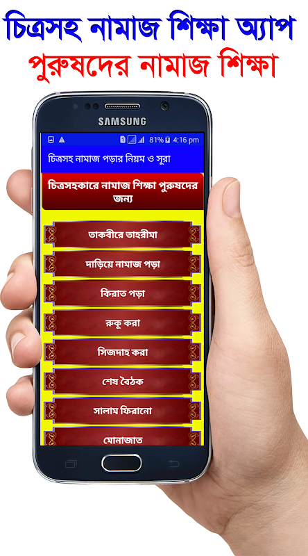 বাংলা নামাজ শিক্ষা ও নামাজের প্রয়োজনীয় সূরা অ্যাপটিতে নামাজের সকল বিষয় বিস্তারিত তুলে ধরা হয়েছে