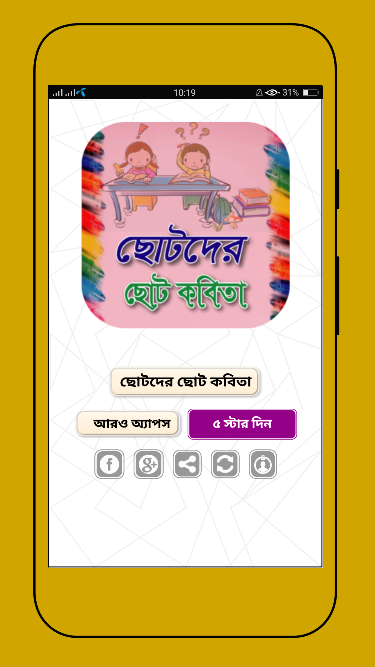 তাই আর দেরি না করে আজই অ্যাপটি ডাউনলোড করে নিন, এবং আপনার বন্ধুদের বাচ্চাদের bangla poems বাংলা কবিতা শেখার জন্য তাদের সাথে শেয়ার করুন।