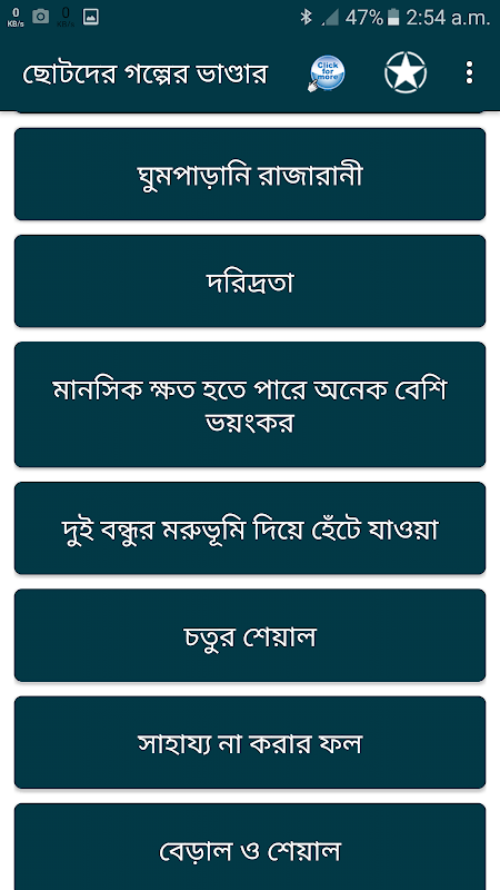 Chotoder Golper Vandar is an educational and delightful app. Rup kothar Golpo for your entertainment, joy and happiness. Hasir Golpo is so nice to read and remember so beautiful and easy. Download the Bengali Gopp Application now. Hope you enjoy our Bengali Storytelling application too. The Bengali Goppo app has the best collection of Bangla Glopo and Funny Goals.