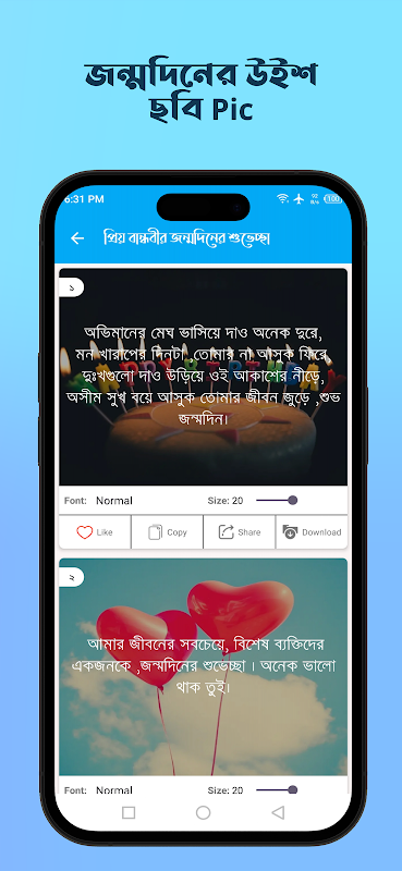 এই অ্যাপসটিতে আপনারা যা পাবেন: 'জন্মদিনের ক্যা পশন বাংলা', 'জন্মদিনের শুভেচ্ছা ও দোয়া', 'শুভ জন্ মদিন প্রিয়', 'শুভ জন্মদিন স্ট্যাটাস', 'রোমান্টিক', জন্মদিনের শুভেচ্ছা', 'আনকমন জন্মদিনের শুভেচ্ছা ', 'জন্মদিনের শুভেচ্ছা পিকচার' , 'মেয়েদের জন্মদিনের শুভেচ্ছা স্ট্যাটাস', 'বনস', 'বন ধু জন্মদিনের শুভেচ্ছা স্ট্যাটাসফানি', 'জন্মদিা ের শুভেচ্ছা বন্ধু', '生日快乐祝福', 给女朋友的浪漫生日祝福