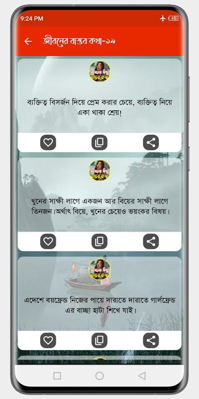 মানুষ যখন বাস্তবতায় বাস করে তখন সে বাস্তব জীব ন নিয়ে কিছু কথা বুঝে যায়। আবার অনেকে আছেন যারা বাস্তব জীবন নিয়ে কিছু কথ াফেসবুকেবাসোশ্যালমিডিয়াতেশেয়ারদিয়েথা কেন। তাদের জন্য আমরা খুঁজে খুঁজে বাস্তব জীবন নিয়ে ভালোমানেরস্ট্যাটাসগুলোএইঅ্যাপসেরভিতরদিয ়েছি।
