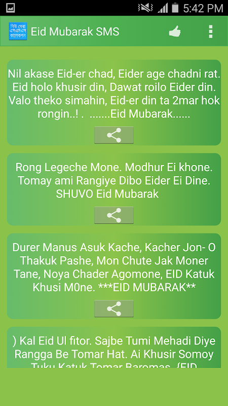 -প্রতিটি এসএমএস এর নিচে রয়েছে মেসেজ পাঠানোর অপশন। যা আপনি যেকোন জায়গায় পোস্ট -করতে পারবেন। ফেসবুকে স্ট্যাটাস দিতে পারবেন, ভাইবার কিংবা হোয়াটসঅ্যাপের মাধ্যমেও -পাঠিয়ে দিতে পারবেন প্রিয়জনকে