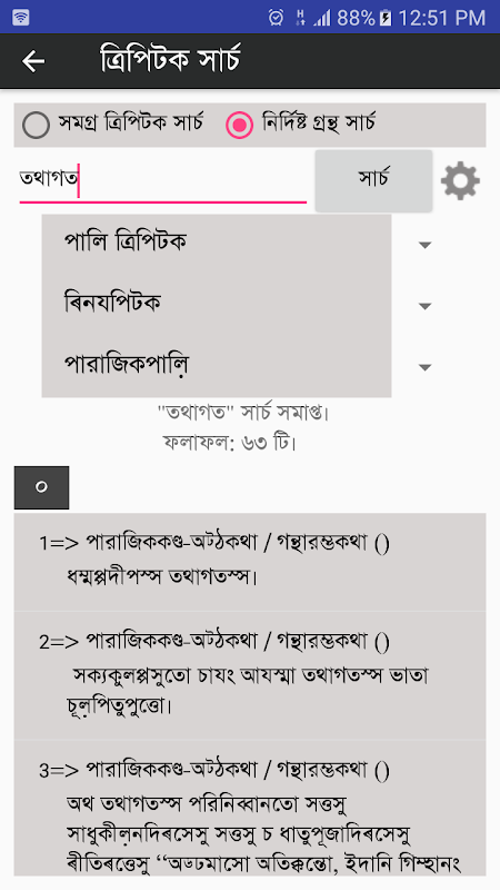 ১) সমগ্র ত্রিপিটক সার্চ করার সুবিধা